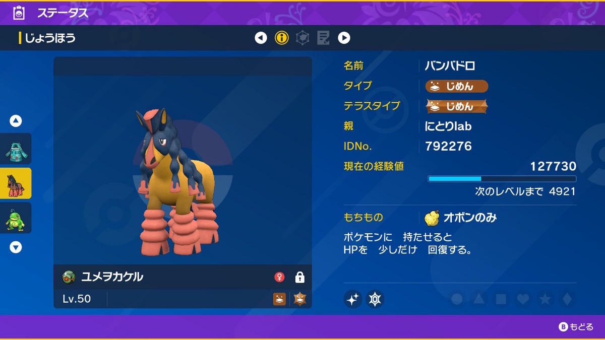 しかしこの構築はテラスタルをほぼラウドボーンに切る前提なので、テラスなしのカミだと誰にも勝てないという事態が発生した。しかも意識してSを振っていなかったためミラーではすべて抜かれており、完全なお荷物と化していた。