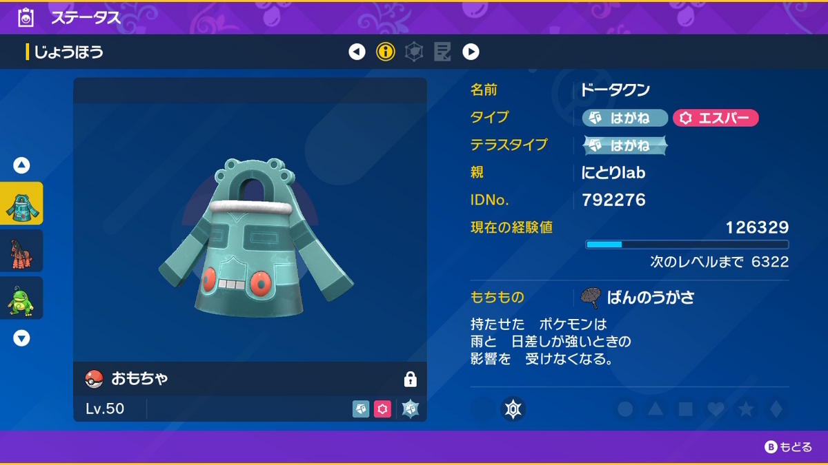 便利屋。事前の想定ではただの補完枠として組み込んだはずが、大会中盤からはほぼ全ての構築に対して先発安定となる有能ポケモンと化していました。