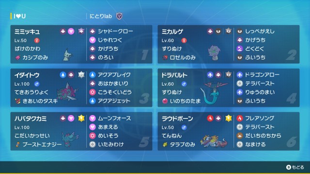 ランクマの流用個体なためテラスや努力値振りは適当。ランクマ外でもちゃんと仕事する優秀な対面駒だった。