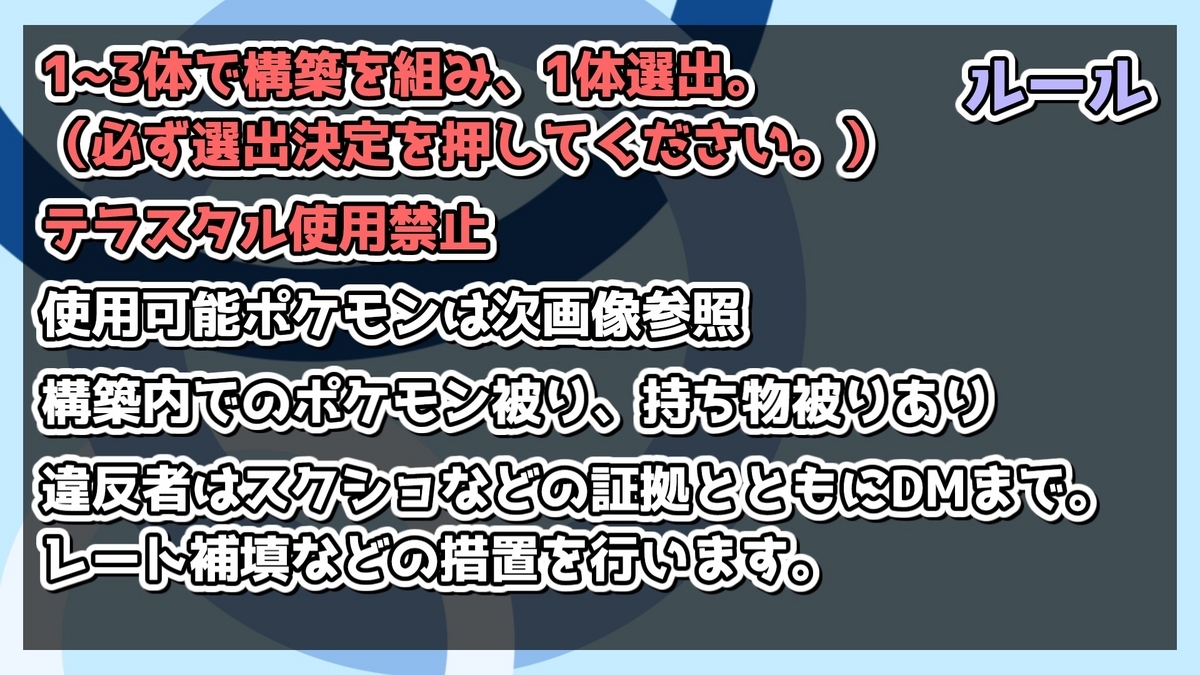 自分の反省点としては、プールが広いからか予想に反して「明確に強いポケモン」がいる環境にならず、色々なポケモンが使われてた点です。自分は環境読みしすぎて迷走した感ありました()