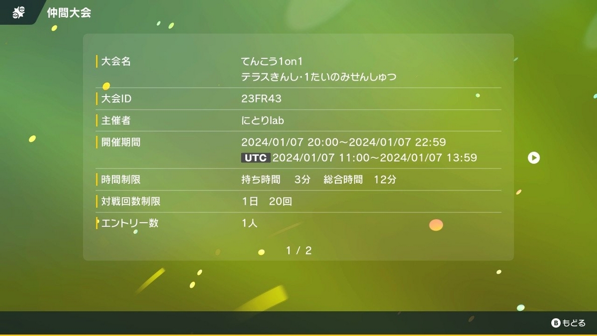 折角初手ミカルゲ&電テララウボという強い並びを握れたのに、他4枠の考察を詰め切れず勝ちきれなかったのは本当に悔しいため、次の公式大会からはちゃんと準備して悔いのないように戦うと誓った。