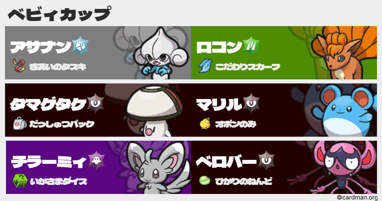 今回は合計種族値300以下のポケモンしか使えない仲間大会『ベビィカップ』に参加してきました!